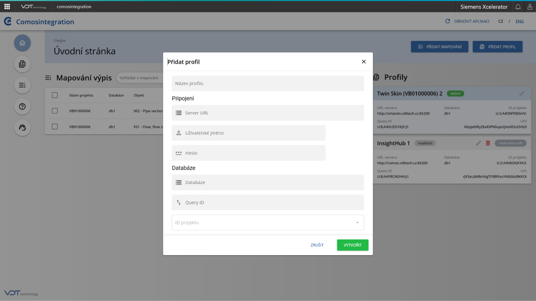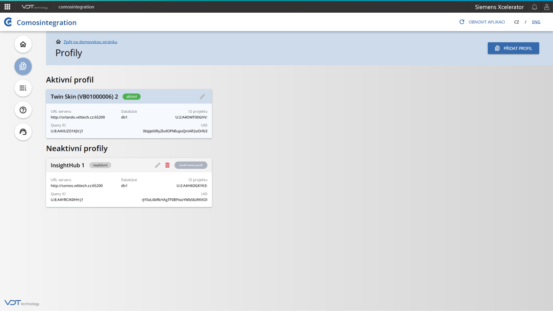 •Zajišťuje automatickou aktualizaci údajů v COMOS projektech na základě dat poskytovaných prostřednictvím Insights Hub.