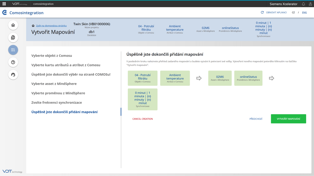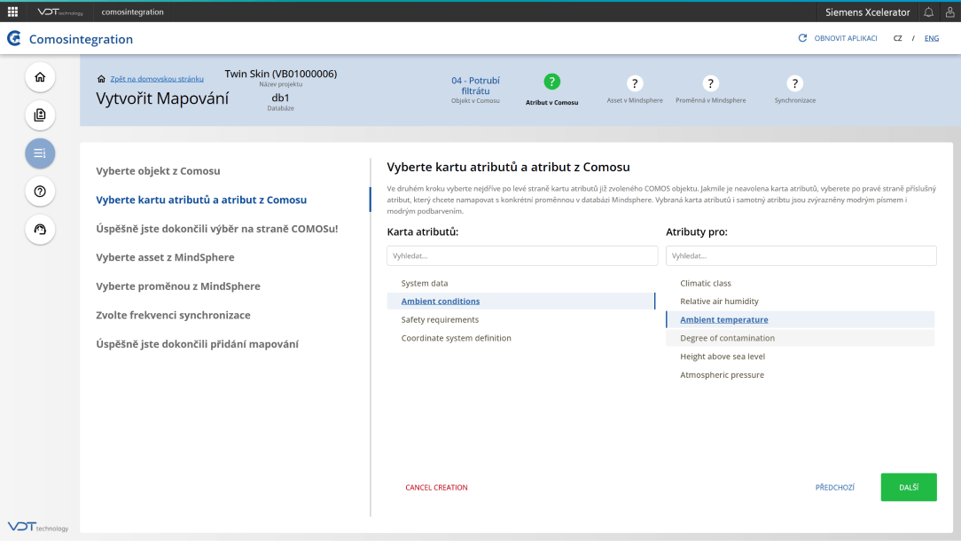 S aplikací COMOSINTEGRATION můžete data propojovat dvěma způsoby:- •Pomocí jednoduchého průvodce: Tento způsob je ideální pro vytváření jednotlivých mapování mezi Insights Hub a COMOS. Průvodce Vás krok za krokem provede nastavením, což usnadní proces propojení.