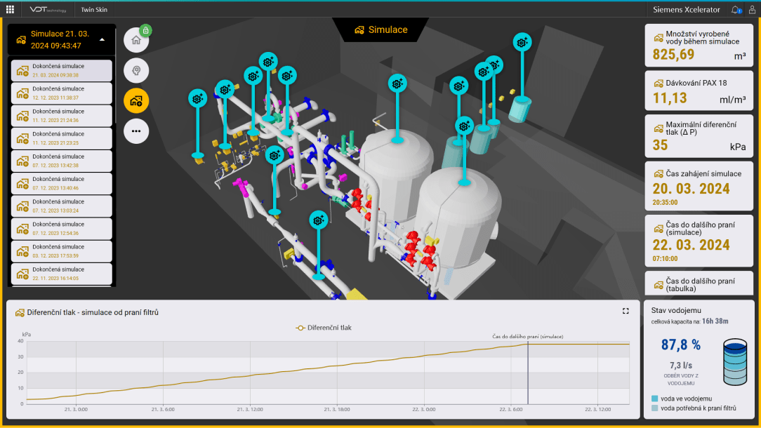 - •Detailní přehled: Simulace poskytují podrobné informace o průběhu filtračních cyklů, včetně klíčových parametrů úpravy vody, čímž usnadňují optimalizaci procesů.