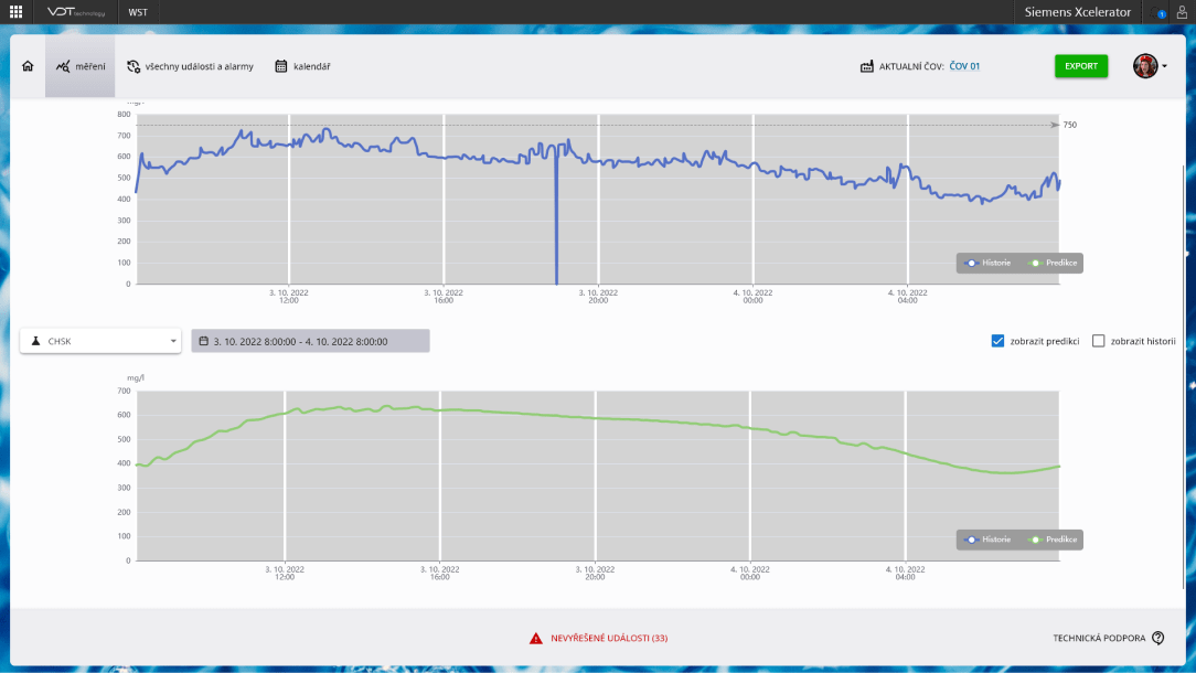 - •Historická analýza: Možnost přístupu k datům až jeden rok zpětně napomáhá lepšímu pochopení dlouhodobých procesů a výkonnosti zařízení.